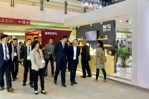 中國(guó)文教體育用品協(xié)會(huì)理事長(zhǎng)易曉俐、中國(guó)國(guó)際展覽中心黨委書記林舜杰與晨光文具董事長(zhǎng)陳湖文先生一同參觀了晨光展區(qū),并對(duì)晨光文具的技術(shù)創(chuàng)新和產(chǎn)品研發(fā)給予了高度評(píng)價(jià)。