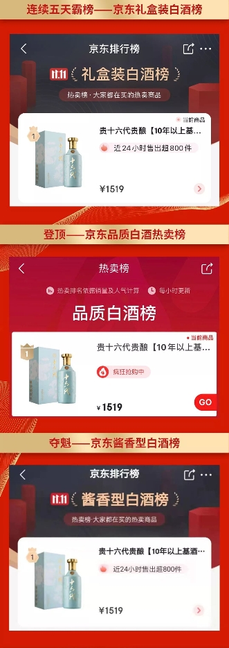 除貴十六代·天青外,貴十六代系列產品在京東全球好物節(jié)活動期間,均有不俗表現。