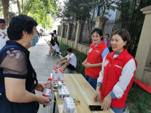 考場(chǎng)外,志愿者們搭建愛心助考區(qū),為來往考生及家長(zhǎng)免費(fèi)提供文具、飲用水、防暑降溫藥品等便利。在不斷涌動(dòng)的高考大軍和家長(zhǎng)人潮中,這些“紅馬甲”顯得格外醒目。頂著炎炎烈日,志愿者們還為此次參加高考的考生及家長(zhǎng)們提供問詢、引導(dǎo)、休息、行李暫管、愛心車隊(duì)等服務(wù),同時(shí)配合城管執(zhí)法人員進(jìn)行秩序維護(hù)工作。