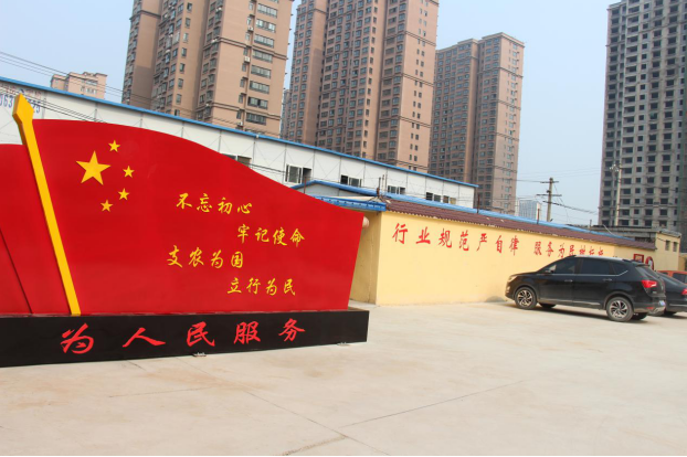 走進東明縣農(nóng)發(fā)行的大院,濃厚的黨建文化氛圍就會迎面而來,正對大門的是寬6米、高3米印有“不忘初心、牢記使命”和“支農(nóng)為國、立行為民”的紅旗標牌,紅旗標牌旁邊的墻面上書寫著“行業(yè)規(guī)范嚴自律、服務為民樹標桿”,北面的綠地周圍環(huán)繞著十個黨建標牌,直觀易懂的黨建合規(guī)宣傳標語,成為全行職工和客戶駐足觀看的新“景點”。
