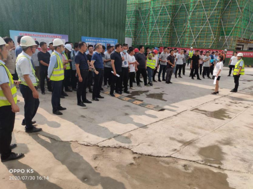 隨后,項(xiàng)目技術(shù)總工吳少楠帶領(lǐng)參會(huì)人員對(duì)現(xiàn)場(chǎng)進(jìn)行觀摩,講解了施工現(xiàn)場(chǎng)采取的揚(yáng)塵治理措施。表述道:項(xiàng)目現(xiàn)階段處于主體施工,在進(jìn)行商品混凝土澆筑時(shí),專設(shè)工人對(duì)遺撒混凝土及時(shí)進(jìn)行清理,避免污染道路。項(xiàng)目施工現(xiàn)場(chǎng)垃圾做到集中堆放,嚴(yán)密遮蓋,及時(shí)清運(yùn)。清理廢料或建筑垃圾時(shí),預(yù)先灑水濕潤(rùn)。項(xiàng)目施工現(xiàn)場(chǎng)建立灑水清掃抑塵制度,設(shè)有專人負(fù)責(zé)。在重污染天氣時(shí),還將增加灑水頻次,保持路面濕潤(rùn)。
