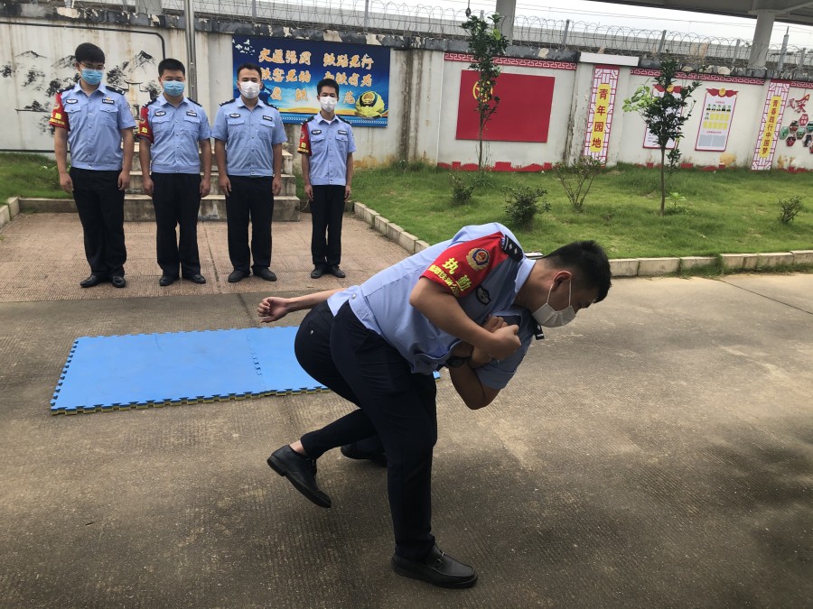 訓(xùn)練中,小教官對(duì)五個(gè)徒手防衛(wèi)與控制動(dòng)作中的推面鎖臂、折腕翻頜動(dòng)作進(jìn)行了細(xì)致的講解和示范演練,對(duì)發(fā)