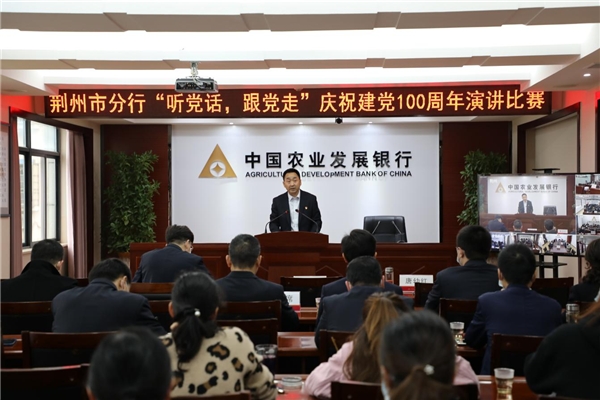 百年大黨,征途如虹。為隆重慶祝中國(guó)共產(chǎn)黨百年華誕,深入推進(jìn)黨史學(xué)習(xí)教育,引導(dǎo)黨員干部學(xué)史明理、學(xué)史增信、學(xué)史崇德、學(xué)史力行,3月31日,農(nóng)發(fā)行荊州市分行舉辦了“聽黨話、跟黨走”慶祝建黨100周年演講比賽,來(lái)自全市7個(gè)支行黨支部和2個(gè)機(jī)關(guān)黨支部共10名選手參賽。