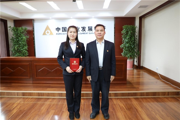 農(nóng)發(fā)行荊州市分行黨委書記、行長(zhǎng)王良勇同志為獲獎(jiǎng)人員頒獎(jiǎng)