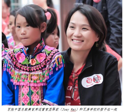 “他們都是百勝中國(guó)牽掛的孩子,這次終于見面了!卑賱僦袊(guó)總裁兼首席運(yùn)營(yíng)官屈翠容(Joey Wat)在公益項(xiàng)目“捐一元”成功開展的第十個(gè)年頭,不僅在肯德基餐廳與里約奧運(yùn)會(huì)中國(guó)首金獲得者張夢(mèng)雪一同捐款、號(hào)召消費(fèi)者參與捐一元,還同她的先生和孩子共赴這場(chǎng)大山里的約定。
