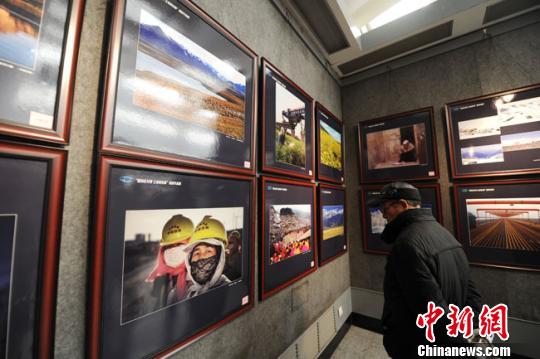 千余篇涉及蘭新高速和寶蘭客專建設(shè)的各類書法繪畫、攝影作品22日亮相甘肅書畫院,引得慕名而來的觀眾駐足觀賞。(楊艷敏 攝)