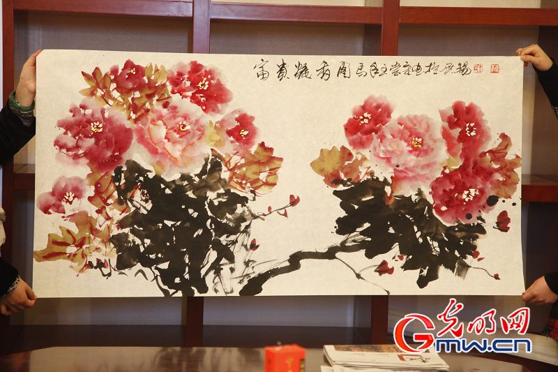 據(jù)介紹,聯(lián)合國教科文組織會(huì)議大廳懸掛的《華夏神韻》牡丹圖就是王崇章的作品。2010年,他應(yīng)邀為人民大會(huì)堂創(chuàng)作巨幅花鳥畫作品《國色天香》;2011年又為中南海創(chuàng)作了《紫氣東來》、《春滿人間》、《凝香》等一系列牡丹作品。(陳敏 通訊員 陸云婷)
