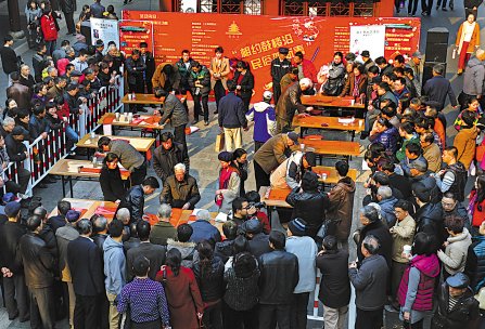央廣網(wǎng)河南分網(wǎng)消息 據(jù)寧波日?qǐng)?bào)報(bào)道:1月25日下午,寧波海曙湖上書畫藝術(shù)苑的12位書畫名家在鼓樓沿古戲臺(tái)前揮毫潑墨,現(xiàn)場(chǎng)書寫春聯(lián)贈(zèng)送市民,把新春祝福送進(jìn)百姓家。(胡建華、許玉芬、陳棟)