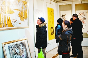 此外,除了人物和馬作品外,山水花鳥作品也成為關注的焦點。當代著名國畫名家溫長山的作品《菊花群貓圖》,小貓和菊花生動和諧;同是喜好貓科動物的畫家戴瑞剛的《王者》則是另一種格局,戴瑞剛曾求教于諸多前輩名家,特別善長畫虎,他畫的老虎虎虎生威。同時,參展的書法有中國書法協(xié)會會員李墨耘的《老子道德經(jīng)》,中國書法協(xié)會會員高山的《茶道》不僅書法造詣較高,其在中國傳統(tǒng)文化基礎上的再創(chuàng)作也顯得尤為珍貴。