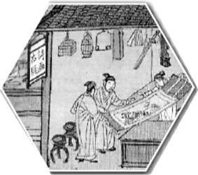 《賣書畫的店肆》《清明上河圖》局部 仇英 圖片選自《風(fēng)雅之好——明代嘉萬(wàn)年間的書畫消費(fèi)》