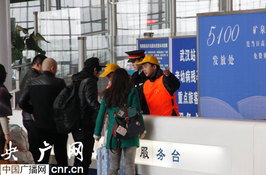 央廣網(wǎng)河南分網(wǎng)消息 1月16日,武漢鐵路職業(yè)技術學院“力挺”武漢2014年春運工作,100余名大學生參加了武漢站、武昌站、漢口站的鐵路春運志愿服務工作。