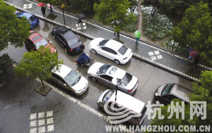 央廣網(wǎng)河南分網(wǎng)消息 據(jù)杭州網(wǎng)報道:昨天下午3點10分,我們到崇文實驗學校門口看了看。學校在近江小區(qū)內(nèi),小區(qū)道路比較窄。學校門口的路大約七八米寬,有一側(cè)是固定停車位,一旦有車在學校門口停留,就會發(fā)生擁堵。
