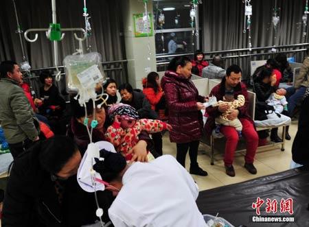 2月24日,河北省兒童醫(yī)院大廳內(nèi)人頭攢動(dòng),前來(lái)就診的兒童絡(luò)繹不絕,走廊里都擠滿了等待就診和輸液的兒童。該省兒童醫(yī)院急診科主任張中馥表示:“開(kāi)春之后天氣好轉(zhuǎn),呼吸道疾病本因會(huì)下降,但最近幾天受霧霾影響,呼吸道患兒明顯增多,以肺炎,上呼吸道炎癥為主!敝行律绨l(fā)翟羽佳 攝