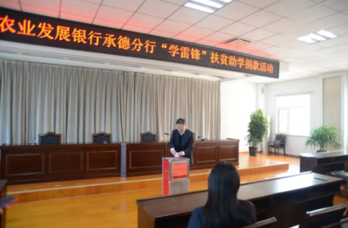 在農(nóng)發(fā)行承德分行黨委的大力支持下,3月4日下午,該行團(tuán)委組織開展“學(xué)雷鋒”扶貧助學(xué)捐款活動(dòng),市分行機(jī)關(guān)及營(yíng)業(yè)部全體員工積極捐款,奉獻(xiàn)愛(ài)心。3月5日,該行團(tuán)委聯(lián)合營(yíng)業(yè)部團(tuán)支部、平泉市支行團(tuán)支部前往平泉市回民小學(xué)看望建檔立卡貧困學(xué)生,并利用籌集的善款為貧困學(xué)生購(gòu)買書包、工具書、筆記本、筆和字帖等學(xué)習(xí)用品,鼓勵(lì)他們努力學(xué)習(xí),牢記雷鋒精神,做正能量的傳遞者!(任志偉)