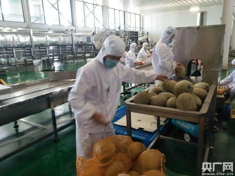 好想你新疆綜合管理中心總經(jīng)理盧國杰說,原來這里的農(nóng)民是豐產(chǎn)不豐收,瓜果在運(yùn)輸?shù)倪^程中,損壞的情況比較嚴(yán)重。今年7月份,收購當(dāng)?shù)氐墓芄线_(dá)500噸,加工成這個產(chǎn)品,解決了果農(nóng)銷售難的問題,讓農(nóng)民既豐產(chǎn)又豐收。