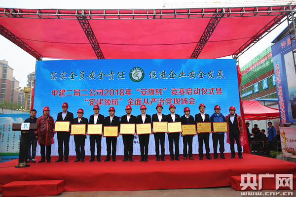 在“安康杯”競(jìng)賽啟動(dòng)儀式上,公司安全總監(jiān)張國(guó)強(qiáng)首先對(duì)2017年“安康杯”競(jìng)賽活動(dòng)情況和2018年工作計(jì)劃進(jìn)行了總結(jié),并指出安全是企業(yè)發(fā)展的基本保障和前提,健康是職工工作的基本需求和權(quán)益。公司正式啟動(dòng)“行為安全之星”活動(dòng)并播放了《中國(guó)建筑“行為安全之星”活動(dòng)宣傳片》及公司安康建設(shè)工作視頻;顒(dòng)還分別為河南省和局2017年度安康杯競(jìng)賽先進(jìn)集體和個(gè)人、公司2017年度優(yōu)秀青年安全生產(chǎn)示范崗、2018年青年安全生產(chǎn)示范崗創(chuàng)建集體進(jìn)行了頒獎(jiǎng)和授牌。此外,西北分公司組織了安全文化建設(shè)表演,并制作播放《囑托》視頻,敲響安全警鐘,最后全體人員進(jìn)行了安全宣誓。