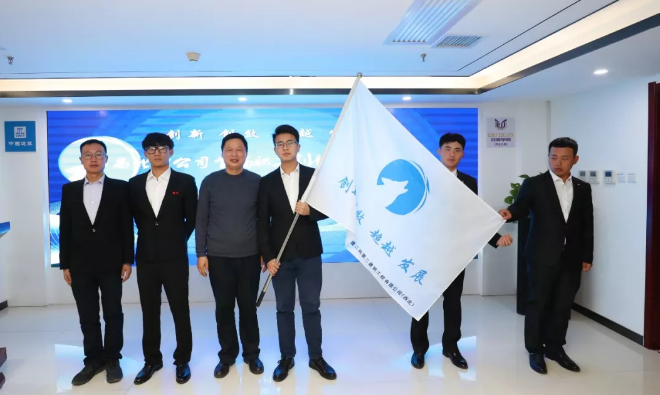 陜西省建設(shè)工會(huì)主席徐富權(quán)為科技人員授旗