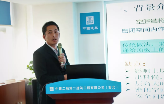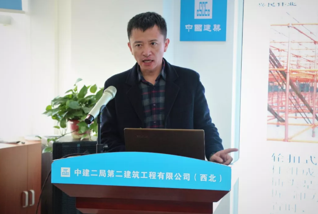 陜西能源遠(yuǎn)大建筑工業(yè)有限公司副總經(jīng)理孫浩康在會(huì)上進(jìn)行交流