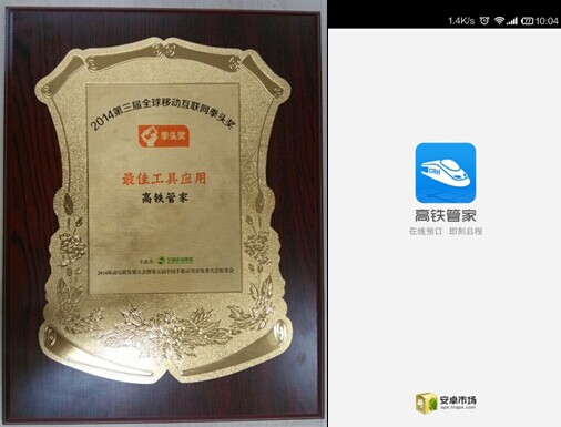 國內(nèi)著名旅行類App“航班管家”兄弟產(chǎn)品——高鐵管家憑借良好用戶體驗和廣大的用戶口碑榮獲:2014最佳工具類應用獎。獲得同類獎項的還有360瀏覽器、360手機助手、百度手機輸入法等。