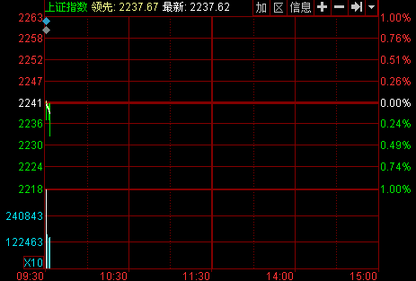 央廣網(wǎng)河南分網(wǎng)消息 據(jù)新華網(wǎng)報道:25日開盤,滬指微漲接近平開,報2241.10點,上漲0.29點,漲幅0.01%,成交9.58億元;深成指報8054.88點,下跌4.52點,跌幅0.06%,成交13.93億元;創(chuàng)業(yè)板指報1461.21點,下跌0.52點,下跌0.04%,成交3.57億元。