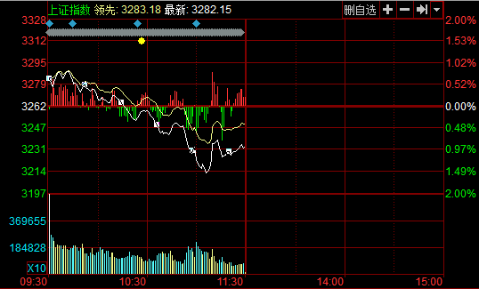 央廣網(wǎng)河南分網(wǎng)消息 30日,兩市雙雙高開,隨后指數(shù)震蕩下挫。盤中受保險等權重股影響,滬指跌逾1%,創(chuàng)業(yè)板跌破1700點。截至午盤,滬指報3230.66點,下跌31.64點,跌幅0.97%,成交1697億元;深成指報11210.32點,下跌38.72點,跌幅0.34%,成交1318億元;創(chuàng)業(yè)板指數(shù)報1692.7點,下跌18.67點,跌幅1.09%,成交227.3億元。