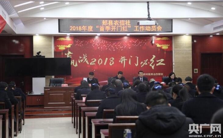 央廣網(wǎng)河南分網(wǎng)消息 1月10日上午,郟縣聯(lián)社召開(kāi)2018年度首季“開(kāi)門紅”工作動(dòng)員會(huì)。聯(lián)社領(lǐng)導(dǎo)班子出席會(huì)議,各部門經(jīng)理、各信用社主任、副主任、會(huì)計(jì)、網(wǎng)點(diǎn)負(fù)責(zé)人及小微貸客戶經(jīng)理代表共120余人參加會(huì)議。