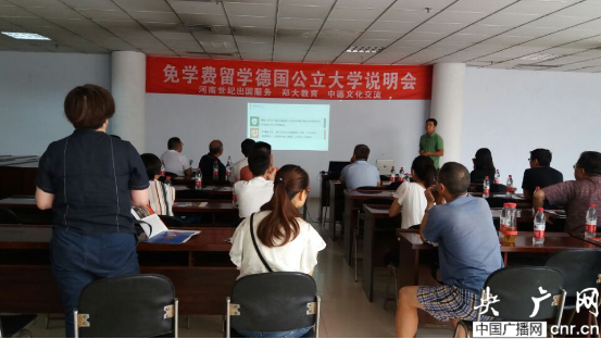 央廣網(wǎng)河南分網(wǎng)7月6日消息(本網(wǎng)特別報道組)2016年7月2日上午,在鄭州大學(xué)新校區(qū)就業(yè)指導(dǎo)中心會議室里,掌聲陣陣,免學(xué)費留學(xué)德國項目說明會在此舉行,本次會議由河南世紀(jì)出國服務(wù)有限公司、鄭大教育語言培訓(xùn)中心、德中教育文化交流中心聯(lián)合舉辦。