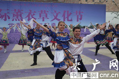 來自8個國家,9個表演團體的近400名表演者薰衣草文化節(jié)開幕式上進行表演