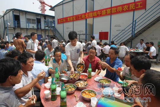 據(jù)了解,黃德寶所在的公司,除了在端午節(jié)請(qǐng)農(nóng)民工吃飯外,還在五一、十一等節(jié)假日為農(nóng)民工放假,還為他們安排專場(chǎng)電影等。同時(shí),還在節(jié)假日期間,在工地安排一些夫妻房,方便農(nóng)民工兄弟與家人相見(jiàn)。(記者 郭俊華)