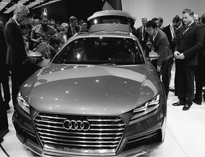13日舉行的北美國(guó)際車展上,觀眾仔細(xì)觀看奧迪發(fā)布的Allroad Shooting Brake概念車。