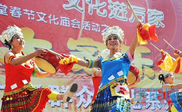 從大年初一到初七,每天下午2點,市委宣傳部、南明區(qū)、云巖區(qū)、觀山湖區(qū)、烏當(dāng)區(qū)、白云區(qū)以及花溪區(qū)分別選送的群眾文化優(yōu)秀節(jié)目相繼在筑城廣場展演,歌舞、戲曲曲藝小品、器樂演奏、百姓健康舞等豐富多彩的節(jié)目相繼亮相,可謂“天天有好戲,場場有精彩”,讓筑城老百姓感受到濃濃的年味,享受了一道道豐盛的節(jié)日文化大餐。