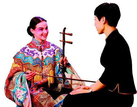 在演員、服裝師和琴師指導下,獨立電視臺著名主持人歐莉婭體驗了戲曲演員扮戲的過程:化好旦角的妝,再穿上《貴妃醉酒》里的戲服;水袖一甩,折扇掩面,舉手投足間頗有幾分味道;一轉(zhuǎn)頭,又有模有樣地拉起京二胡。只是,演出快要開鑼了,這位“洋貴妃”仍穿著一身行頭主持節(jié)目,急壞了青衣潘欣。