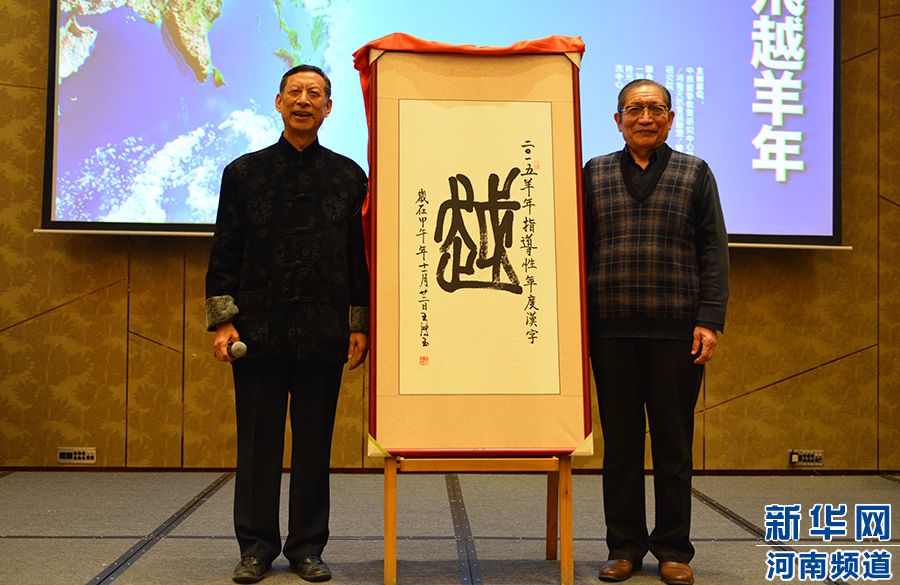中國著名文字學家白雙法先生與原河南省文聯(lián)副主席,中國著名書法家王鴻玉先生共同發(fā)布2015羊年指導性年度漢字“越”。