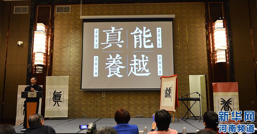 央廣網(wǎng)河南分網(wǎng)消息 1月12日下午,2015羊年指導性年度漢字暨2015新趨勢發(fā)布會在鄭州舉行。在來自全國各地教育界、企業(yè)界與媒體界300多位嘉賓的共同見證下,中國著名文字學家白雙法先生與原河南省文聯(lián)副主席,中國著名書法家王鴻玉先生一起揭開紅色綢緞,一個溫柔敦厚的小篆“越”出現(xiàn)在眾人面前,“越”作為2015羊年指導性年度漢字終于新鮮出爐了。