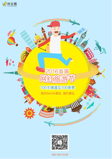 從10月1日至10月7日起,由找主播獨家策劃執(zhí)行的“2016年首屆網(wǎng)紅旅游節(jié)”,將有100名人氣過萬的主播在全球發(fā)起聯(lián)動直播,直擊國慶旅游中100個熱門景點。網(wǎng)絡(luò)直播時代的來臨,實現(xiàn)了人們“足不出戶游遍全球”的夢想。