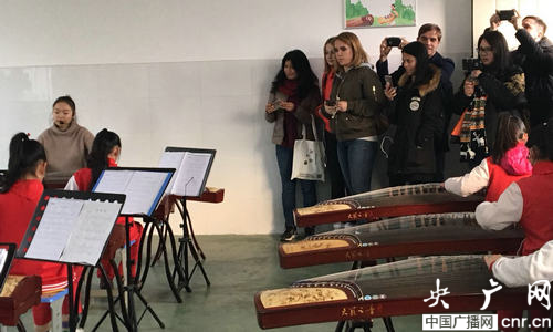 在許慎小學老師的帶領下,留學生們參觀了學校古箏、管樂、美術、繪畫、戲曲等特色班級,并現(xiàn)場觀看了孩子們的才藝展示,孩子們的優(yōu)秀表現(xiàn)讓留學生們驚嘆不已。