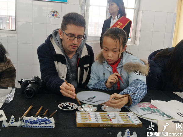 來自意大利的留學生“Alessandro(中文名字:阿漓)”在實驗小學生的幫助下完成了一副“草莓”水墨畫后,很興奮地告訴央廣網(wǎng)記者:“真的太好玩了,我很迷上中國文化!中國人太熱情了,我很感謝!”