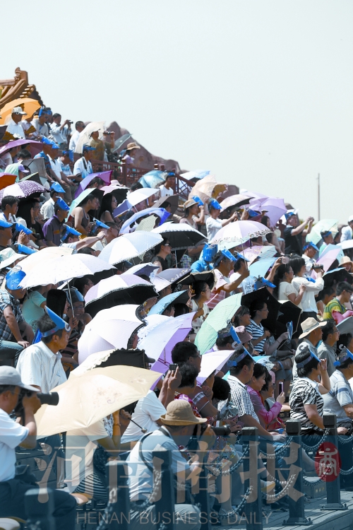 昨天開封端午詩會(huì),游客頂著高溫?fù)蝹阌^看河南商報(bào)記者 陳亮/攝