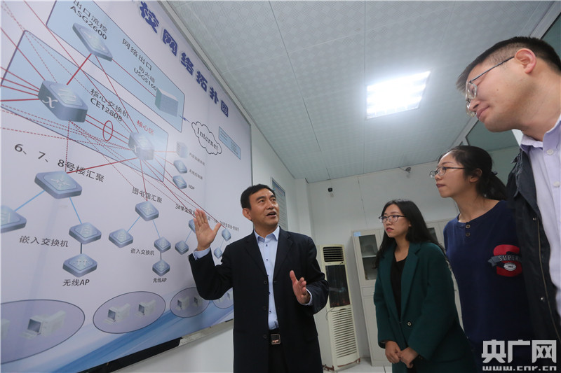連續(xù)三次援疆、十九大代表、哈密職業(yè)技術(shù)學(xué)院副院長劉志懷,與同事一起商討智慧校園建設(shè) 哈密市教育局供圖