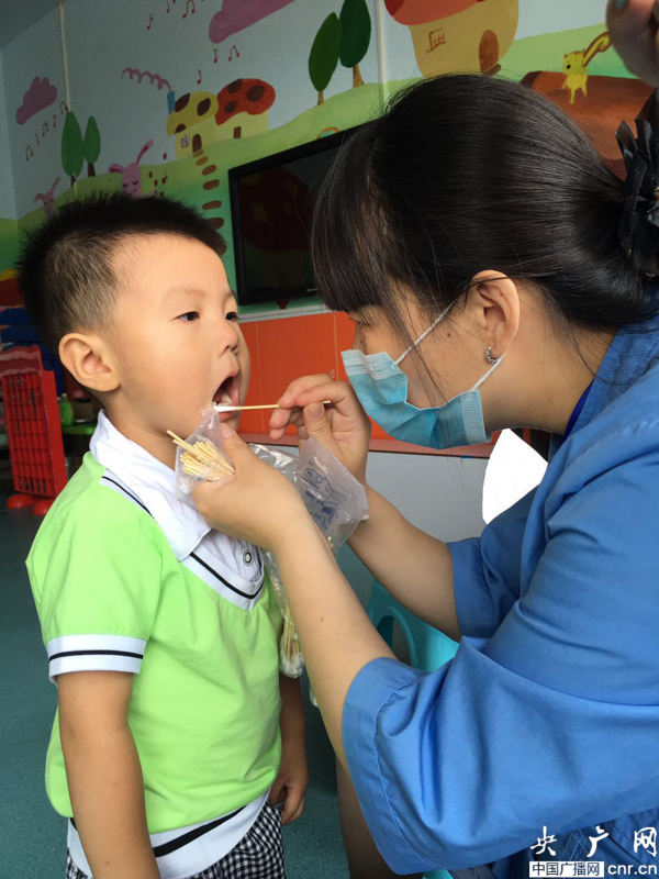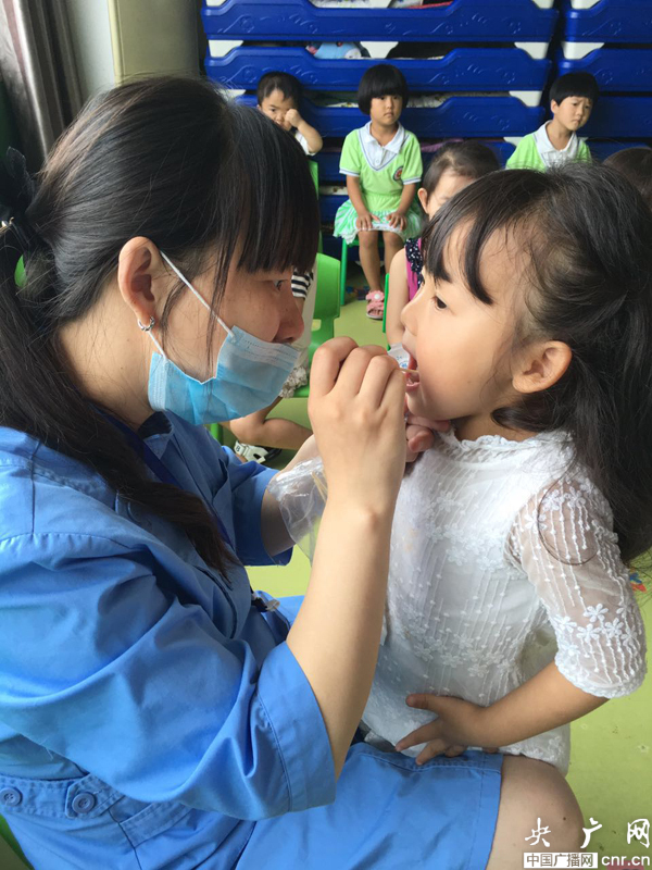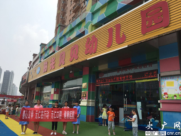 央廣網(wǎng)河南分網(wǎng)消息 2016年7月5日,鄭州市二七區(qū)元仁口腔門診部6名醫(yī)護(hù)人員,驅(qū)車來到管城區(qū)快樂貝貝幼兒園,為快樂貝貝幼兒園的學(xué)生義診,受到小朋友們的熱烈歡迎。