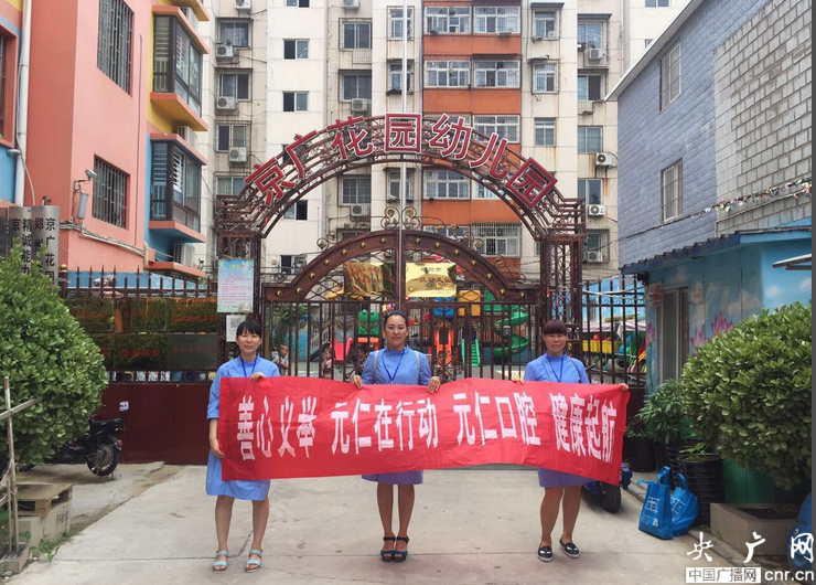 央廣網(wǎng)河南分網(wǎng)消息 2016年7月13日,鄭州市二七區(qū)元仁口腔門診部6名醫(yī)護(hù)人員,驅(qū)車來(lái)到京廣花園幼兒園,為京廣花園幼兒園的學(xué)生義診,受到小朋友們的熱烈歡迎。