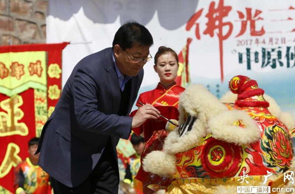 開幕式現(xiàn)場,鞏義市市委常委、政法委書記、公安局局長陳兆甲點睛金獅,鞏義市小關鎮(zhèn)黨委書記白東升發(fā)言,參加廟會的兩名商戶代表亦發(fā)言表示要誠信經(jīng)營。鞏義市市委常委、統(tǒng)戰(zhàn)部部長賀傳偉宣布中原佛山文化廟會開幕。近兩萬游客從四面八方趕來,見證中原佛山千年古廟會在水道口村重現(xiàn)盛事。