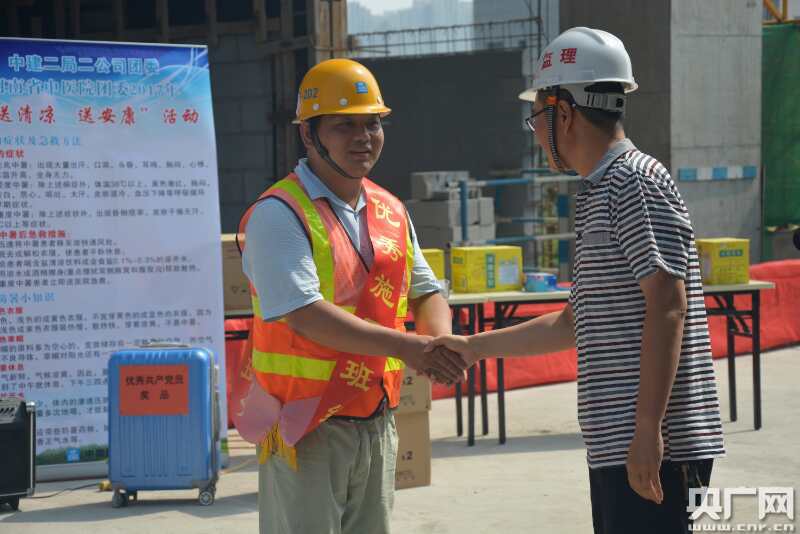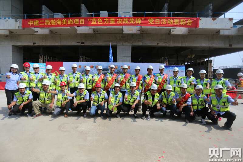 央廣網(wǎng)河南分網(wǎng)消息 七月十日上午,頂著夏日驕陽,冒著嚴(yán)冬風(fēng)雪,瀚海美尚項(xiàng)目迎來了建設(shè)的階段性勝利——匠心精筑、耀世封頂;項(xiàng)目黨支部借著喜封金頂這個(gè)大好時(shí)機(jī),開展了“藍(lán)色力量 決戰(zhàn)先鋒”表彰會(huì),中原分公司生產(chǎn)副總吳小志、項(xiàng)目經(jīng)理鄭利及全體管理人員、勞務(wù)公司、甲方監(jiān)理共同參加。