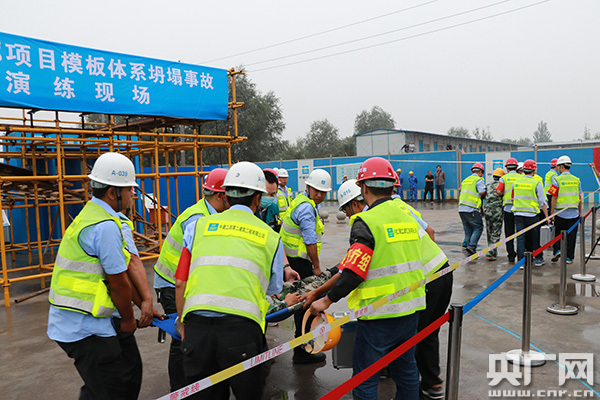 央廣網(wǎng)河南分網(wǎng)9月26日消息 “質量是企業(yè)的生命、安全是生命的保證,中建二局以奉獻優(yōu)質工程,以為業(yè)主和社會奉獻真誠服務為宗旨,以為員工創(chuàng)造健康、安全的工作環(huán)境,確保公司資產(chǎn)免受損失為己任……”隨著講解人的解說,模板坍塌應急救援演練圓滿結束。