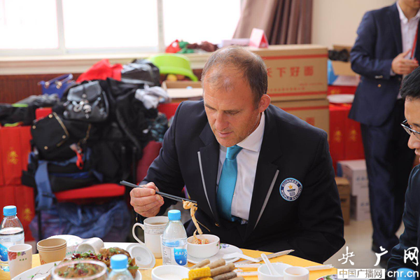 在挑戰(zhàn)活動(dòng)結(jié)束后,John Garland先生也和在場(chǎng)的長(zhǎng)壽老人們一起,饒有興致地一起分享了這份特殊的長(zhǎng)壽面。