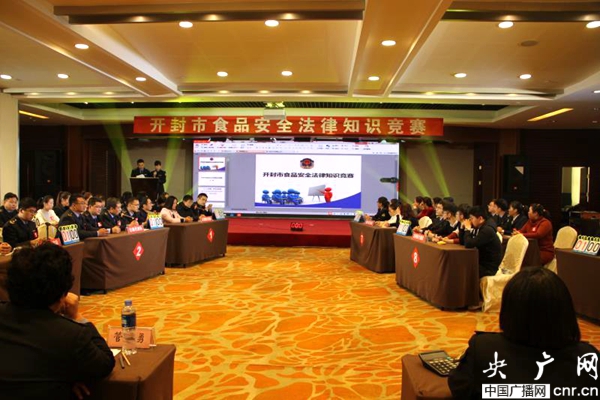 央廣網(wǎng)河南分網(wǎng)12月1日消息 (記者 胡曉輝)11月28日下午,由開封市食品藥品監(jiān)督管理局組織開展的開封市食品安全法律知識競賽在開封中州國際飯店舉行,11支代表隊參賽,食品生產(chǎn)經(jīng)營企業(yè)代表、行業(yè)協(xié)會代表、消費者代表、執(zhí)法人員、檢測技術(shù)人員等近300人現(xiàn)場觀看了當(dāng)天的競賽。11支參賽隊圍繞國家食品安全法律法規(guī)進(jìn)行知識競答,經(jīng)過激烈角逐,開封市食品藥品檢驗所最終獲得一等獎,開封市順河回族區(qū)代表隊、通許縣代表隊獲得二等獎,開封市禹王臺區(qū)代表隊、開封市祥符區(qū)代表隊、杞縣代表隊獲得三等獎。