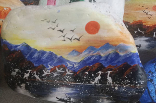 據(jù)了解,村民們創(chuàng)作出的石畫作品會(huì)由一家文化公司統(tǒng)一收購(gòu),而使用的石頭也是由公司從村民的手里買來的。石橋村村民郭建民高興地說:“現(xiàn)在是農(nóng)閑時(shí)節(jié),平常沒事都是打打牌、看看電視消磨時(shí)間。現(xiàn)在有了這個(gè)石畫,我?guī)е眿D、兒子都來學(xué)習(xí),學(xué)好了畫出的石頭還能賣錢嘞!”石畫產(chǎn)業(yè)不僅促進(jìn)了石橋鎮(zhèn)群眾的精神文明建設(shè),更增加了鎮(zhèn)村居民的收入。