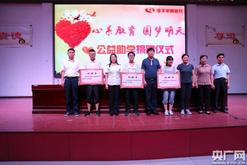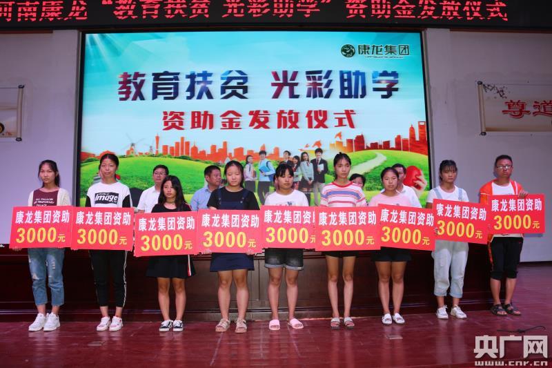 央廣網(wǎng)河南分網(wǎng)8月22日消息 “感謝教育扶貧政策,讓我享受了免費(fèi)營(yíng)養(yǎng)午餐、學(xué)費(fèi)減免、學(xué)費(fèi)資助,可以心無旁騖的學(xué)習(xí),感謝愛心企業(yè)的助學(xué)金,可以讓我不再為大學(xué)學(xué)費(fèi)而發(fā)愁!8月21日,河南寶豐一高學(xué)生謝帥博在河南康龍集團(tuán)“教育扶貧 光彩助學(xué)”資助金發(fā)放儀式上發(fā)自肺腑的感言。