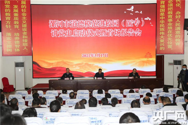央廣網(wǎng)漯河3月18日消息(記者 彭華 通訊員 趙陽 姚遠)3月17日下午,漯河市委宣傳部在漯河醫(yī)學(xué)高等?茖W(xué)校報告廳舉行道德模范進校園講黨史啟動儀式暨首場報告會。全國道德模范提名獎榮獲者、全國公安楷模、中國好人陳曉磐作了題為《學(xué)黨史強信心增干勁 守初心擔(dān)使命建偉業(yè)》的專題報告。