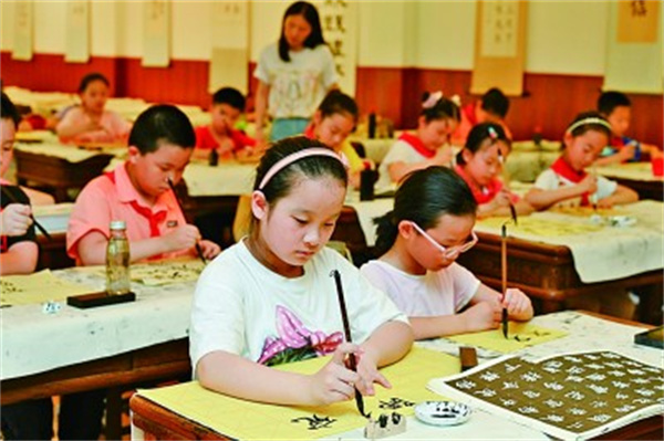 在福建福州市烏山小學(xué),學(xué)生在參加課后書法興趣班。新華社發(fā)